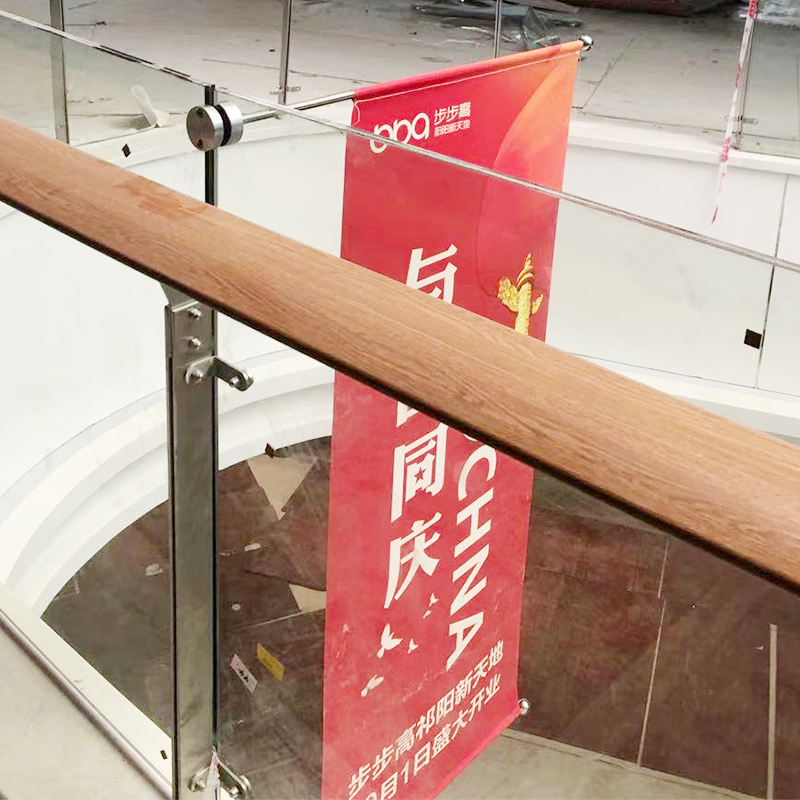Shopping mall side flagpole 80cm side flagpole stainless steel pole glass guardrail clamp flagpole advertising hanging flag hanging flag custom