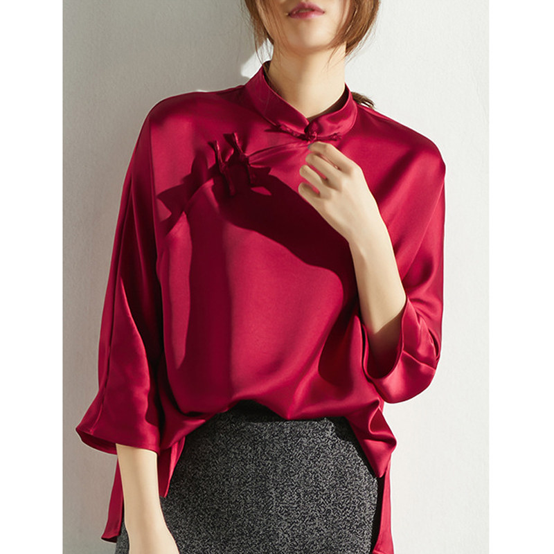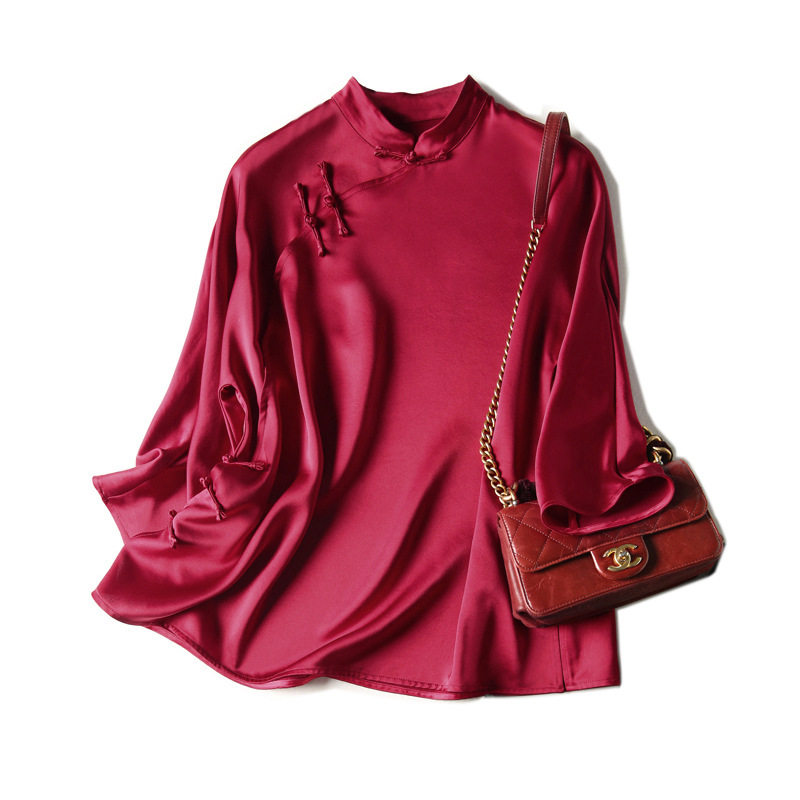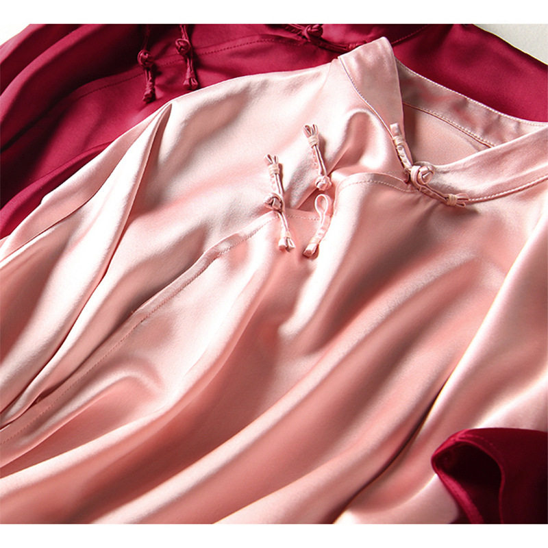 Chinese style improved version of fashion Chinese cheongsam top one-piece disc buckle satin Tang suit girl's dress young pink