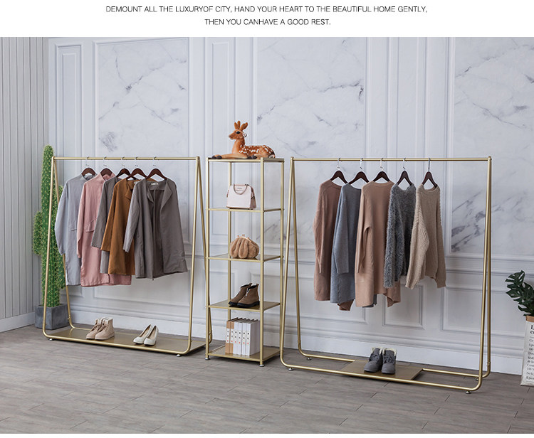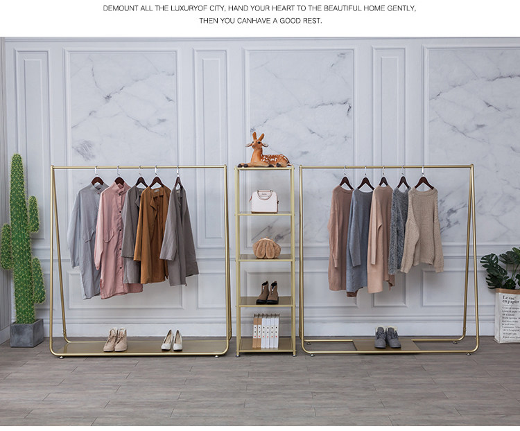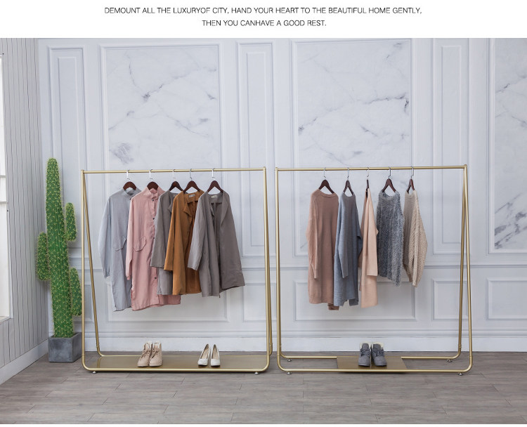 Modern household gold floor hangers Clothes rack Household bedroom floor hangers Hangers against the wall clothes