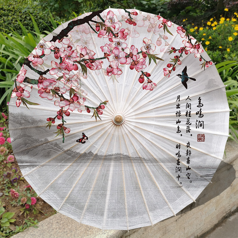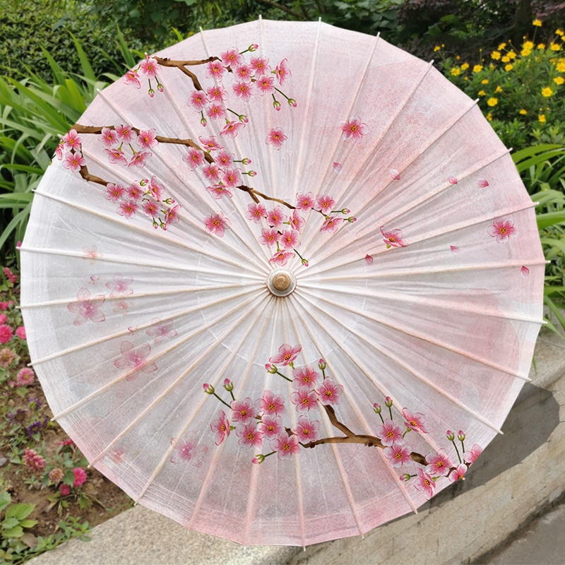 (Peach Blossom) Oil Paper Umbrella Antique Women's Rainproof Sunscreen Practical Classical Dance Decoration Performance Chinese Style Hanfu Umbrella