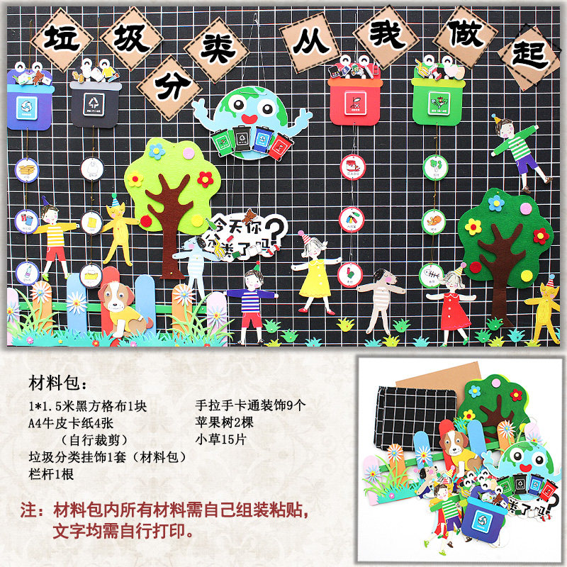 Garbage classification hanging decoration 5 sets of garbage sorting themed wall package garbage classification laqi 1 string of garbage sorting cards 1 set of garbage sorting small energy hand package 1 set
