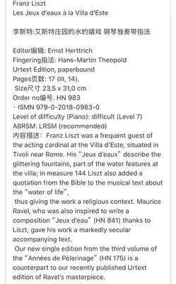 Liszt Fountain of Este Manor Piano Solo with fingering Henle Henle Original Score Book Liszt Les Jeux deaux a la