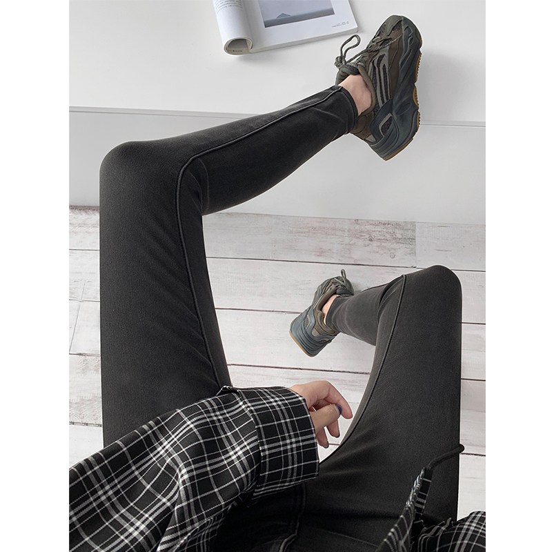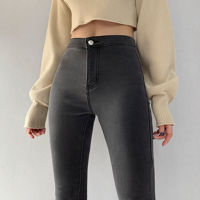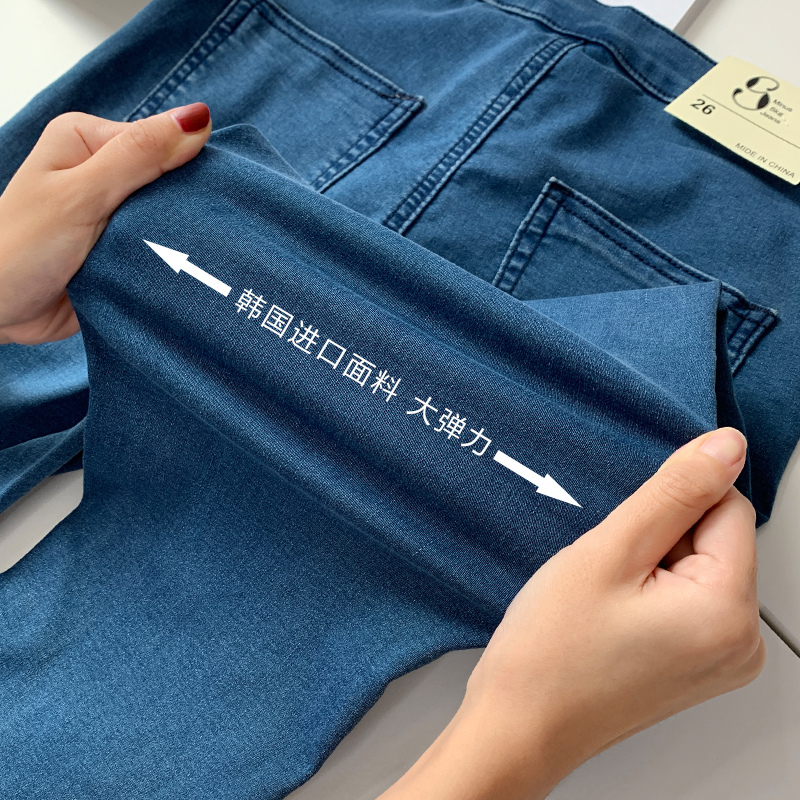 European and American retro elastic lifting hip jeans woman high waist 90% pants small foot pencil pants tight with slim leg pants