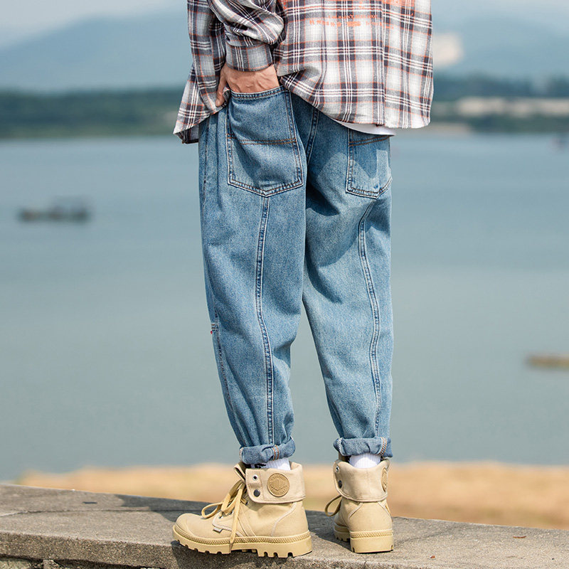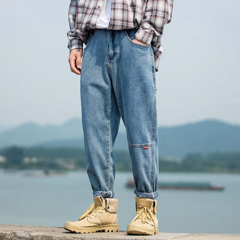 Nine points loose straight jeans men's Japanese oversize spring and autumn old washed retro all-match casual pants