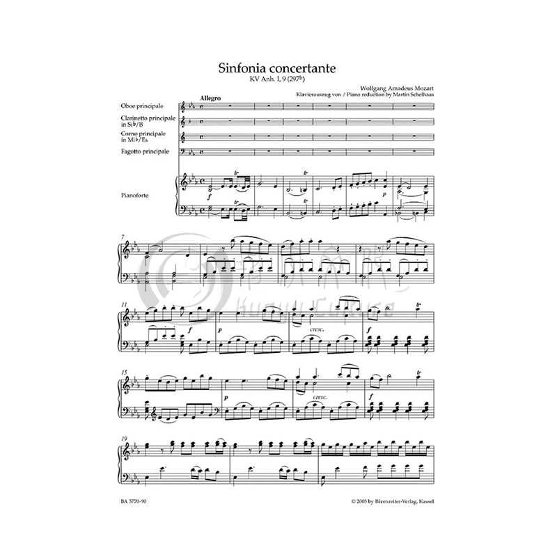 Mozart drop E great tune Concerto KV Anh I 9 297b wood pipe music score spectrum and piano accompaniment German cyclists original score Mozart Si
