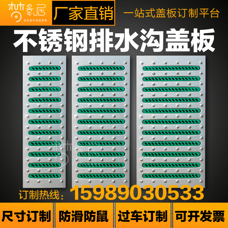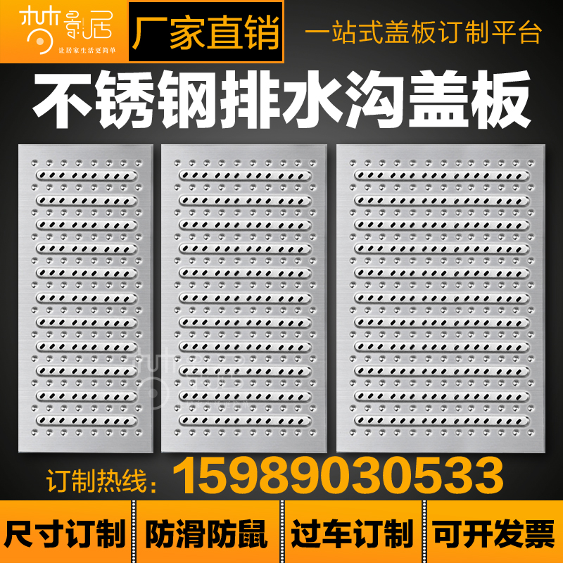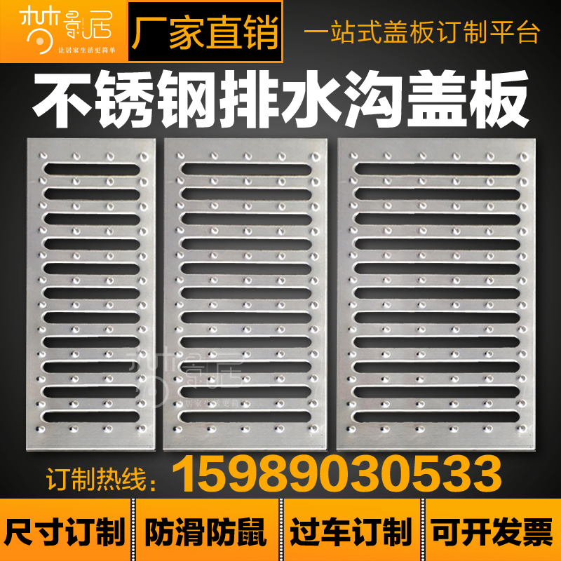304 stainless steel hotel drainage ditch cover kitchen sewer gutter grille 201 rainwater grate anti-slip manhole cover