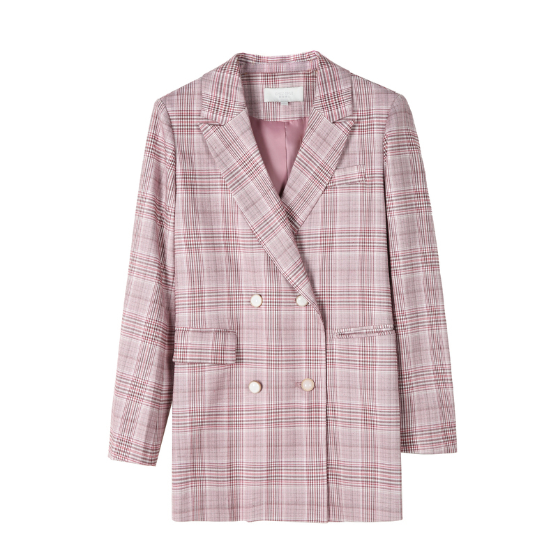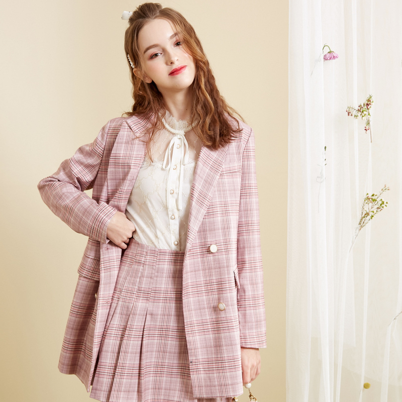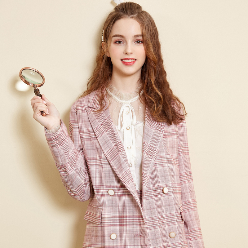 Autumn water Eiren small suit jacket women's British style 2021 autumn new women's pink plaid suit top