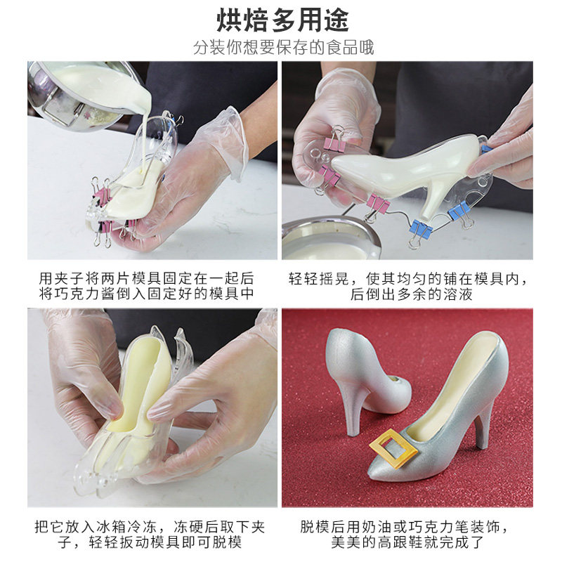 Net Red High Heels Chocolate Mould Creative 3D Stereo DIY Cake Decoration Hollow Crystal Shoe Baking Mould