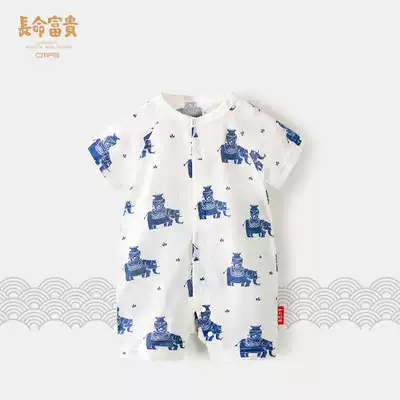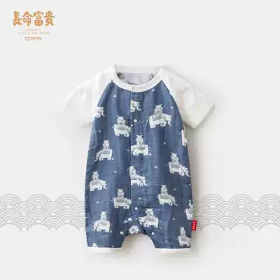 Long-lived and rich baby full moon suit summer thin cotton gauze newborn jumpsuit Chinese style Haiyi climbing suit