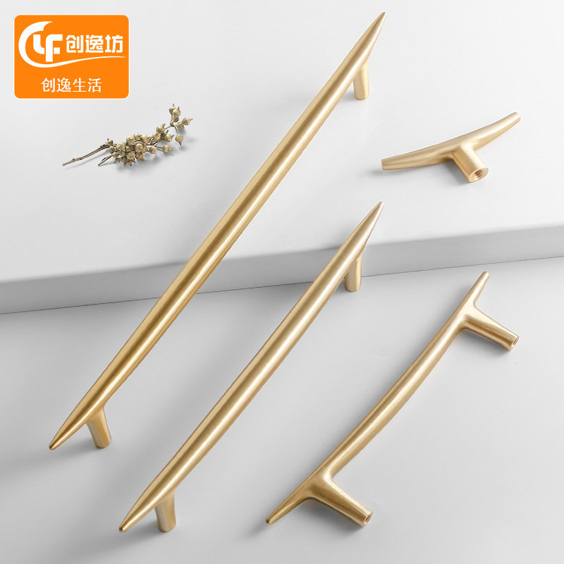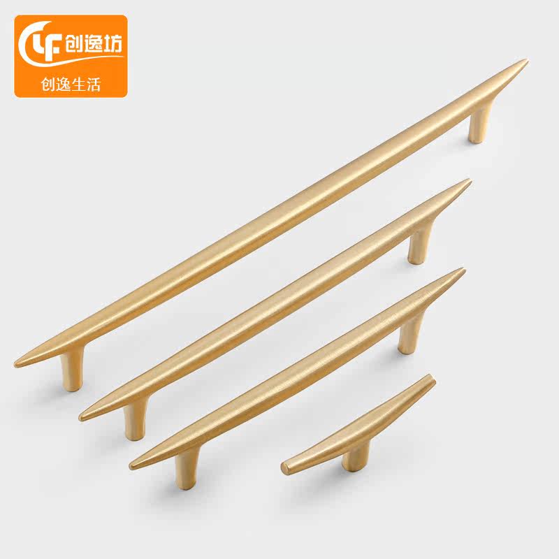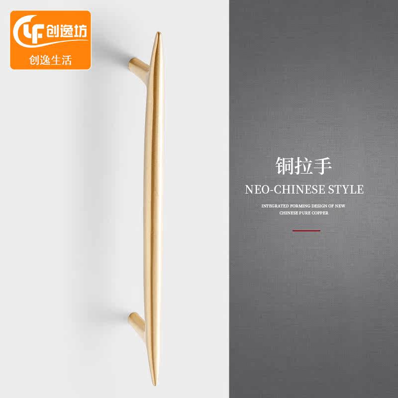 Light extravagant brass pull handle simple cabinet door modern overall cupboard drawer creative new Chinese wardrobe pure bronze color door handle