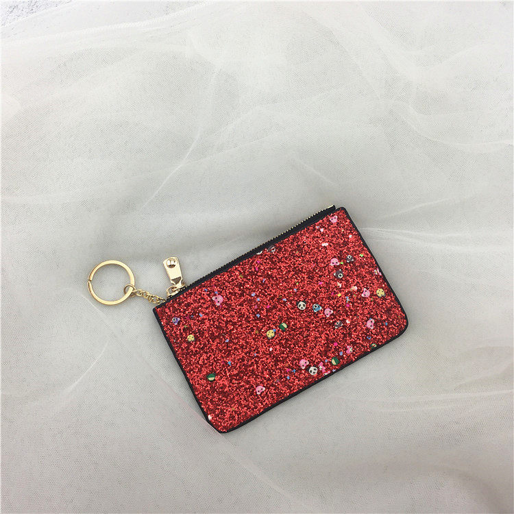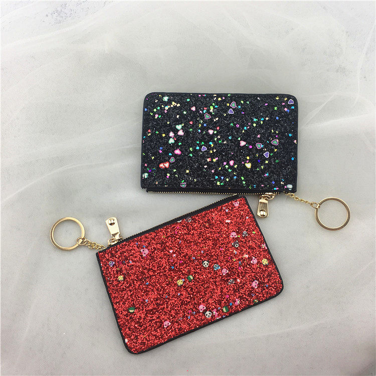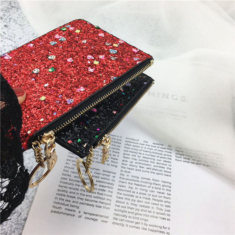 Very fairy small coin purse women's short new retro sequin card holder mini compact zipper key bag ultra-thin card holder