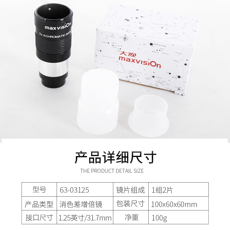 Crystal Bloom Great View Maxvision Astronomical Telescope Accessories 1 25 Inch Metal Achromatic 3X Multiplier