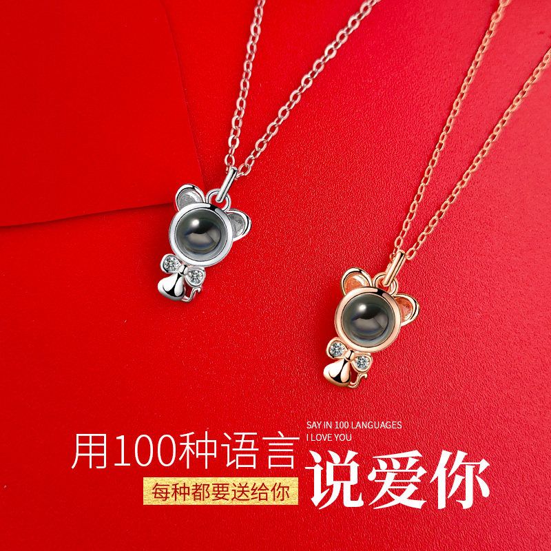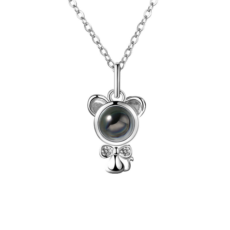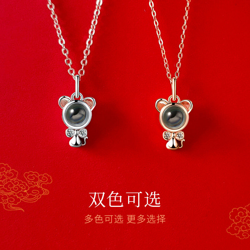Year of the rat sterling silver necklace custom projection tide mouse pendant collarbone chain zodiac year 520 gifts