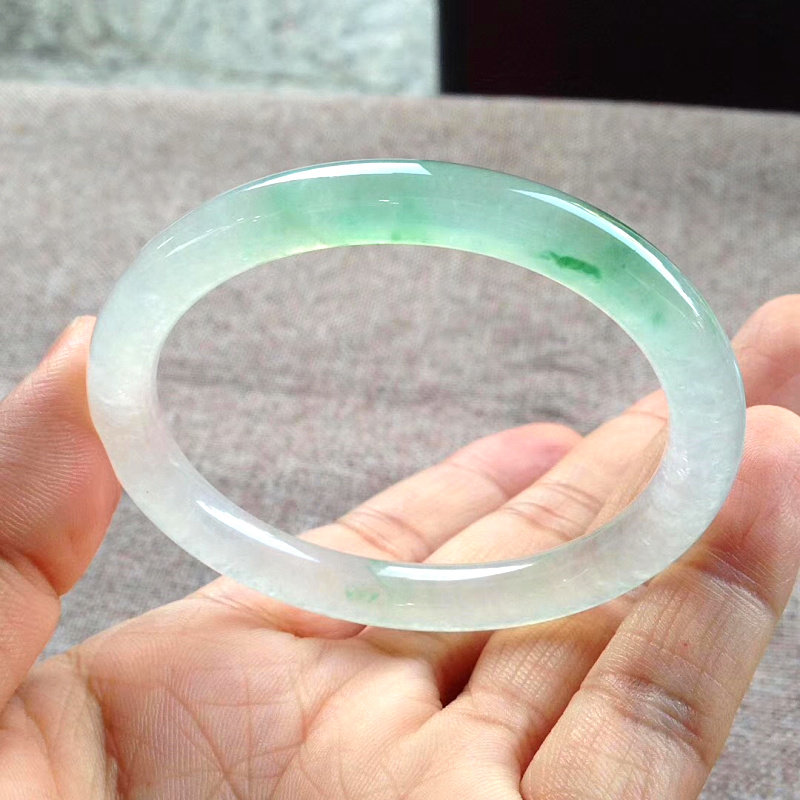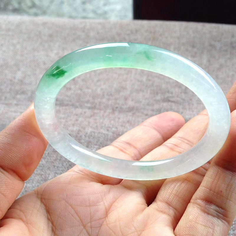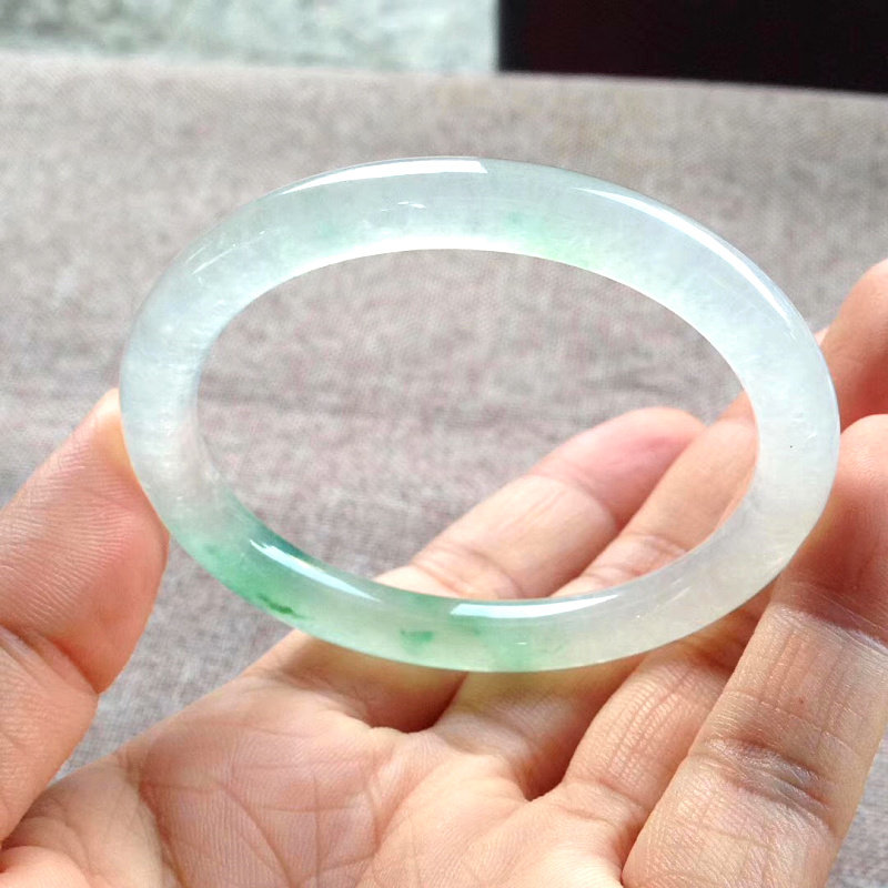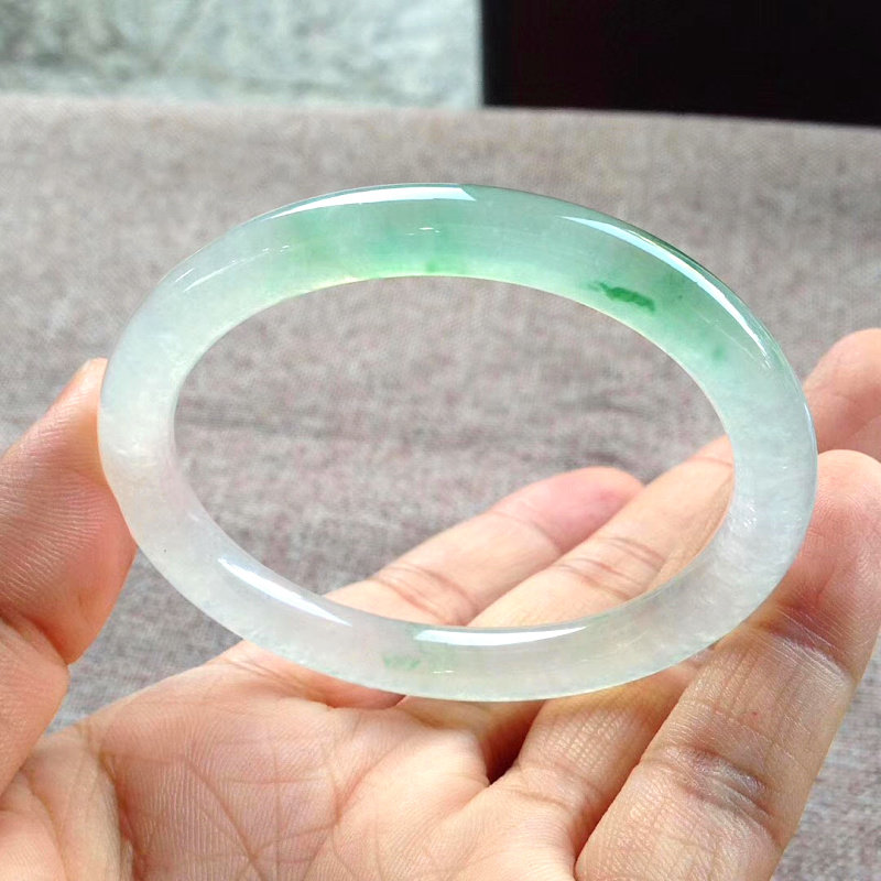 Natural ice penetrating jade bracelet round bar Myanmar old pit A goods ice species floating flower jade bracelet jade bracelet girl style