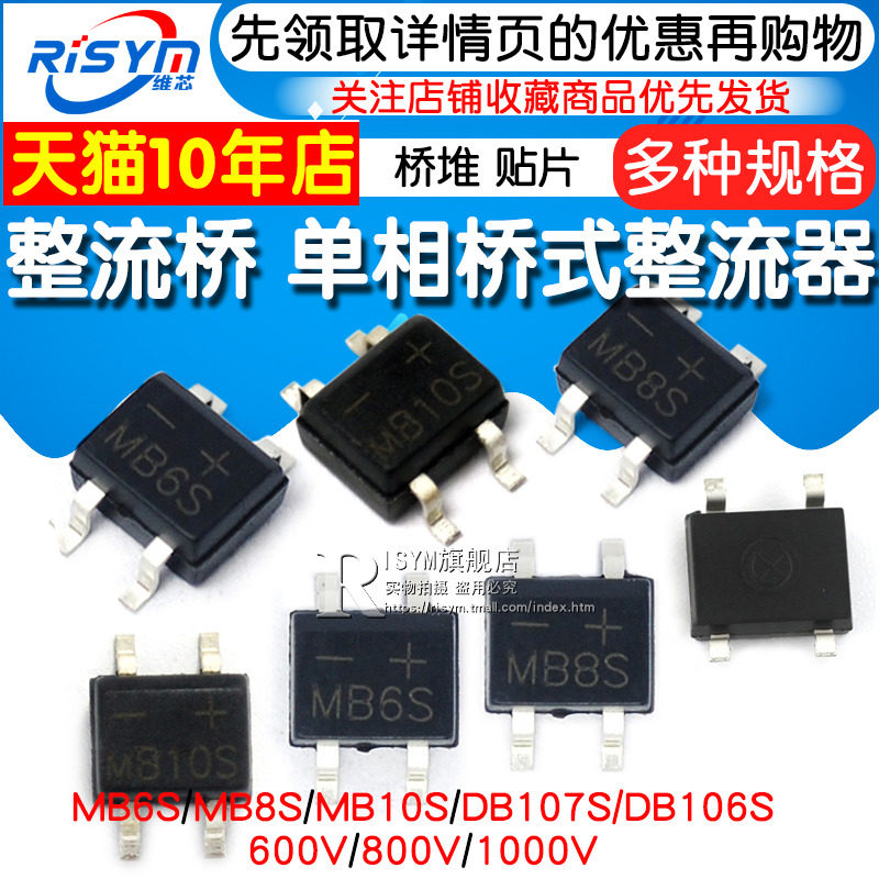 DB107S MB6S rectifier bridge Single phase bridge rectifier MB8S MB10S 0 5A1000V bridge stack SOP4