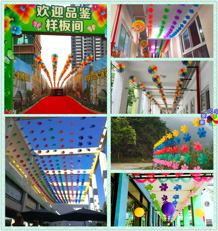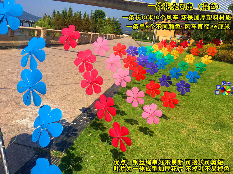 Kindergarten outdoor sunscreen finished windmill decorative string outdoor rotating plastic colorful flower windmill round solid color