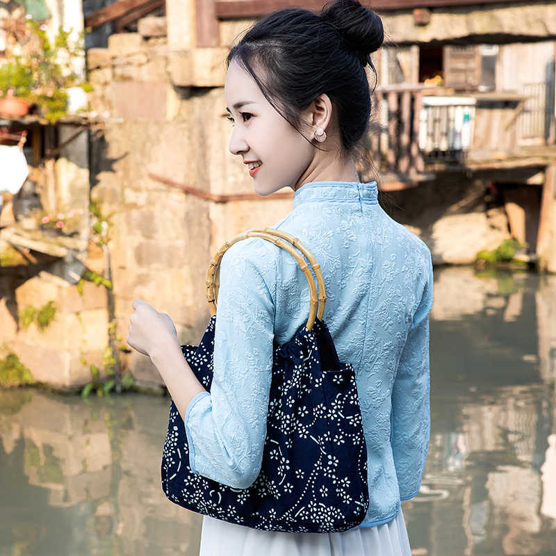 Uzhen Handmade Homemade Batik Cloth Bag Single Shoulder Carry-on Bamboo Ring Bag Retro small crowdfolk Maid Bag of Femina Bag
