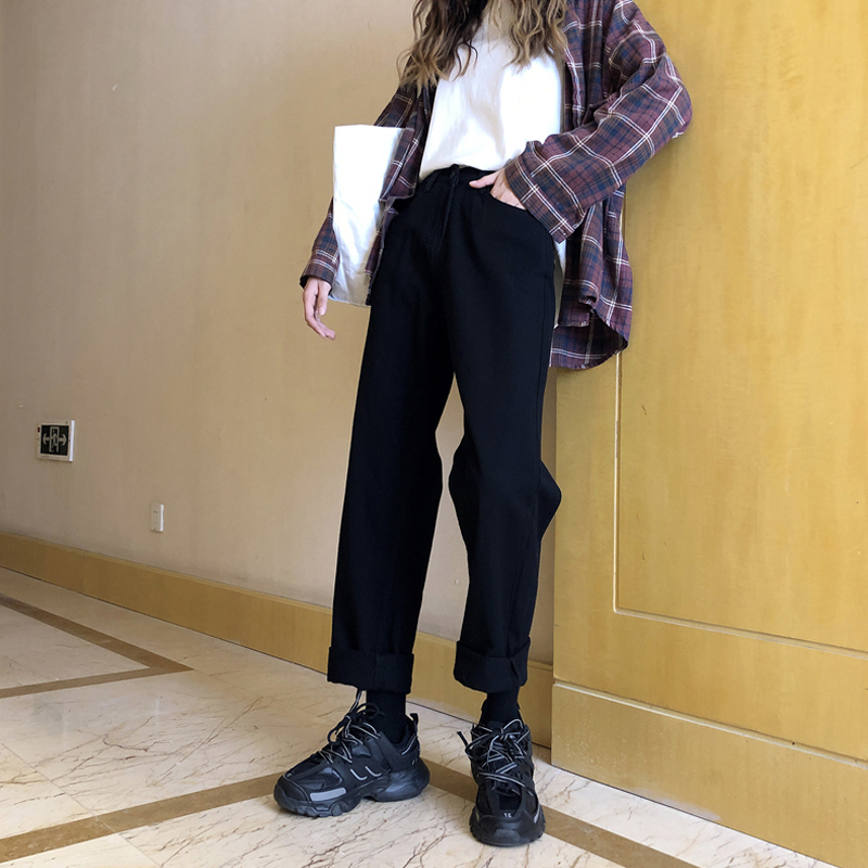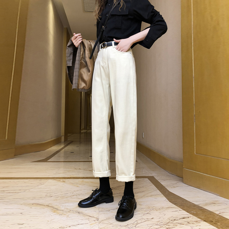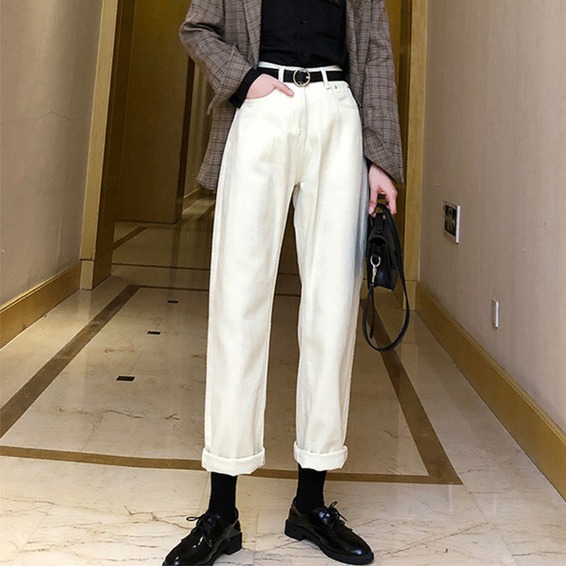 2022 new female fit for hip thigh thick pants white large size loose straight cylinder wide leg jeans slim fit