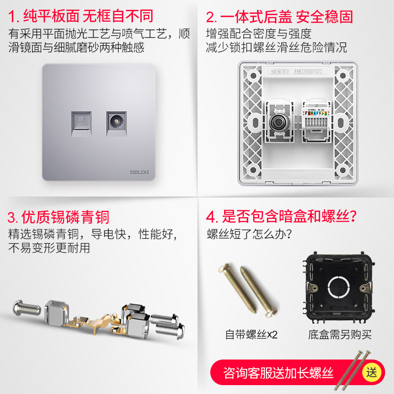 Delixi wall computer cable TV plug broadband network cable switch interface socket box home weak current panel 86