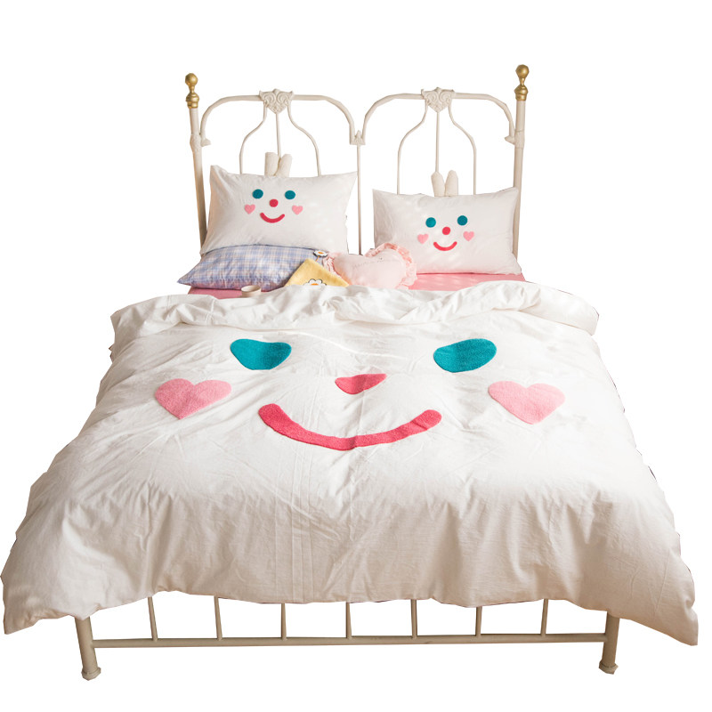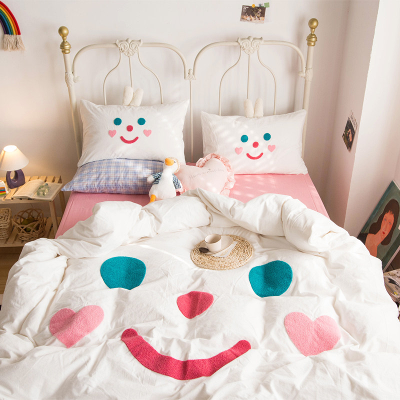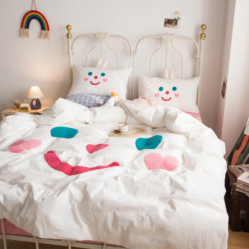 ins meta-gas adolescent girl hearts pure cotton washed cotton towels embroidered with four sets of full cotton quilt cover cute cartoon bed bedding