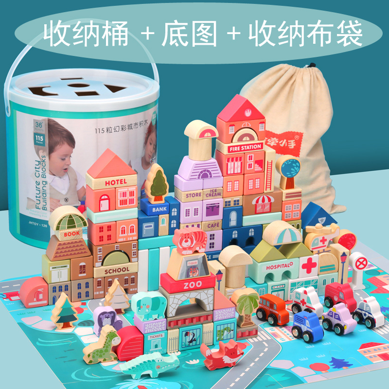 Urban Transport Building Blocks Wooden Large Chunks 1-2-3-4 Year Old Large Grain Baby Puzzle Cognitive Digital Letter Toys