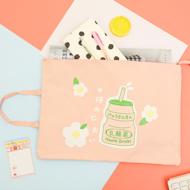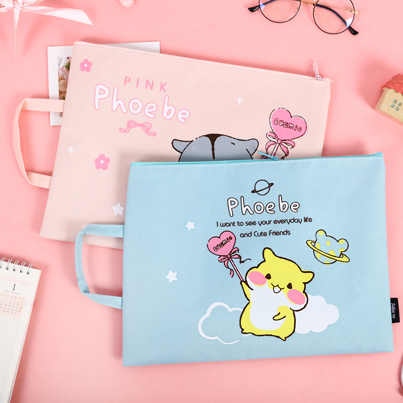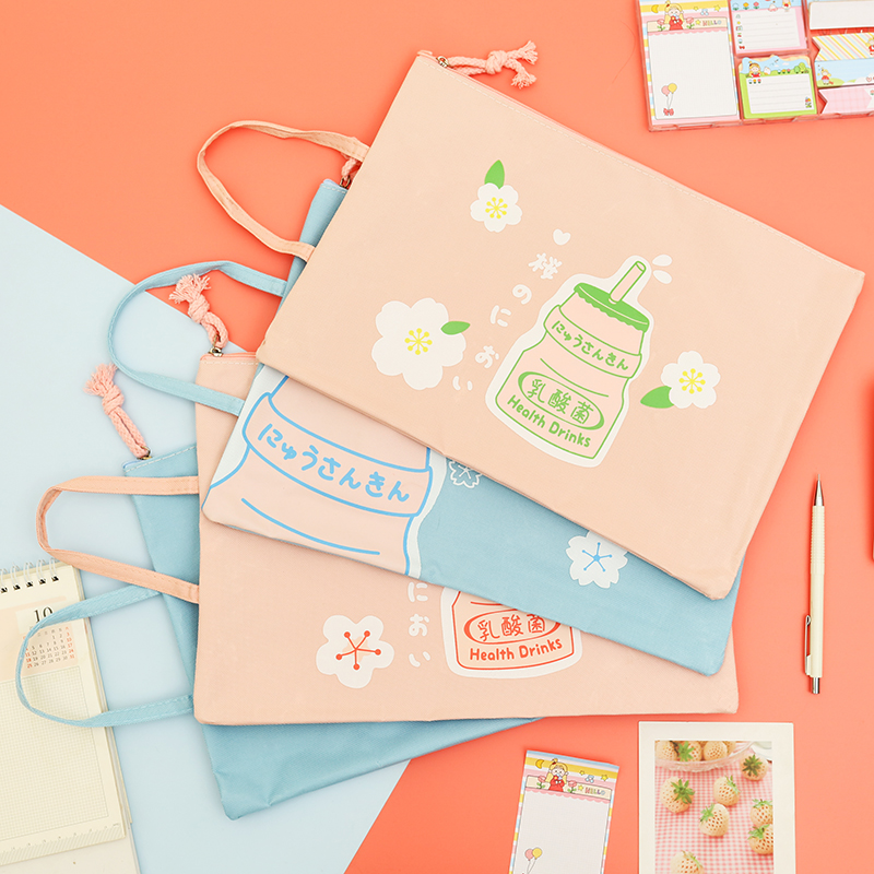 Cute laced file bag A4 South Korea Xiaoqing New paper kit Archives Elementary school students with containing bag Canvas Hand Children Cartoon Large Capacity Waterproof Female Brief Pregnant pregnant woman Pregnancy Test Hand Carry Bag