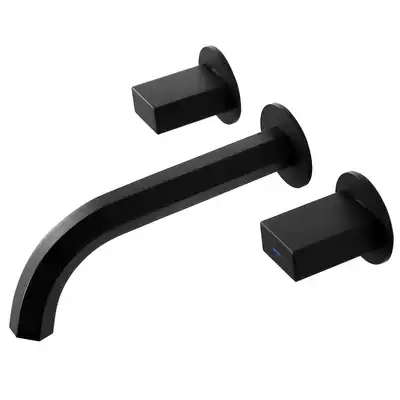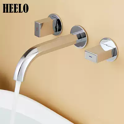 Double black in-wall basin faucet Concealed embedded hot and cold square basin Household European-style brushed gold