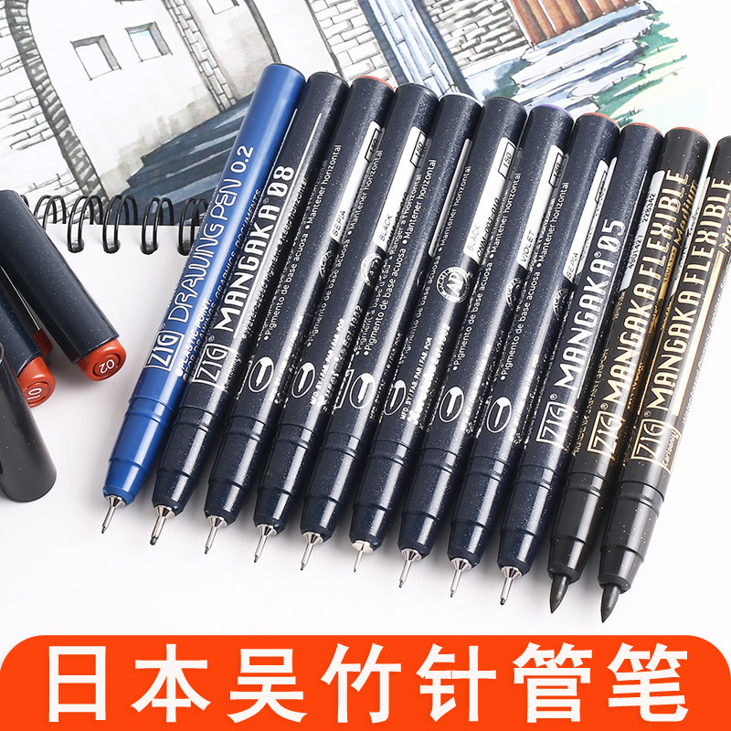 Japan imported Kuretake Wu Bamboo waterproof needle pen Comic hook edge pen Hook line pen Stroke line Brown color hand-drawn animation special pen Animation design drawing pen Watercolor non-smudge