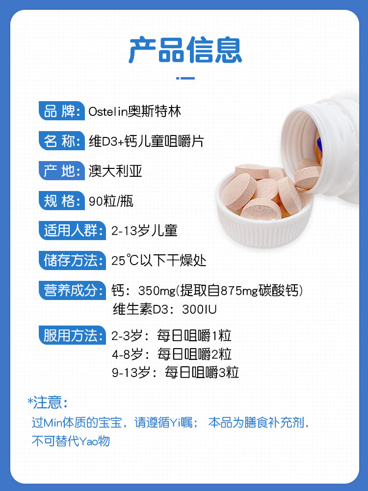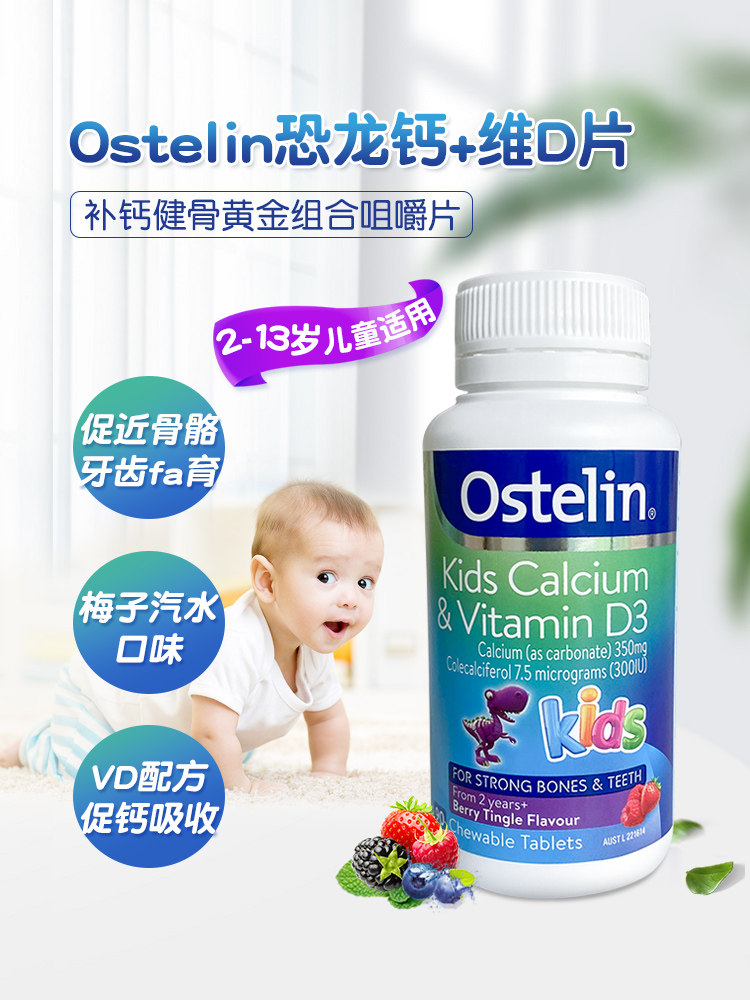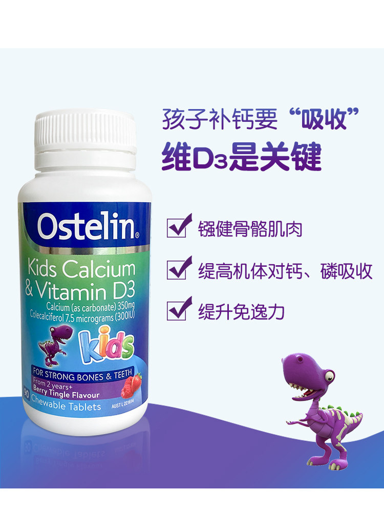 Australian Ostelin Ostling children calcium tablets VD calcium vitamin d3 chewable tablets small dinosaur supplements calcium 90 grains-Taobao