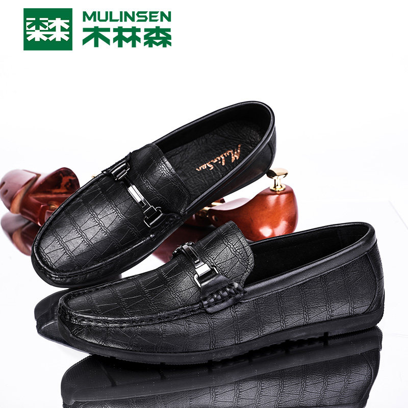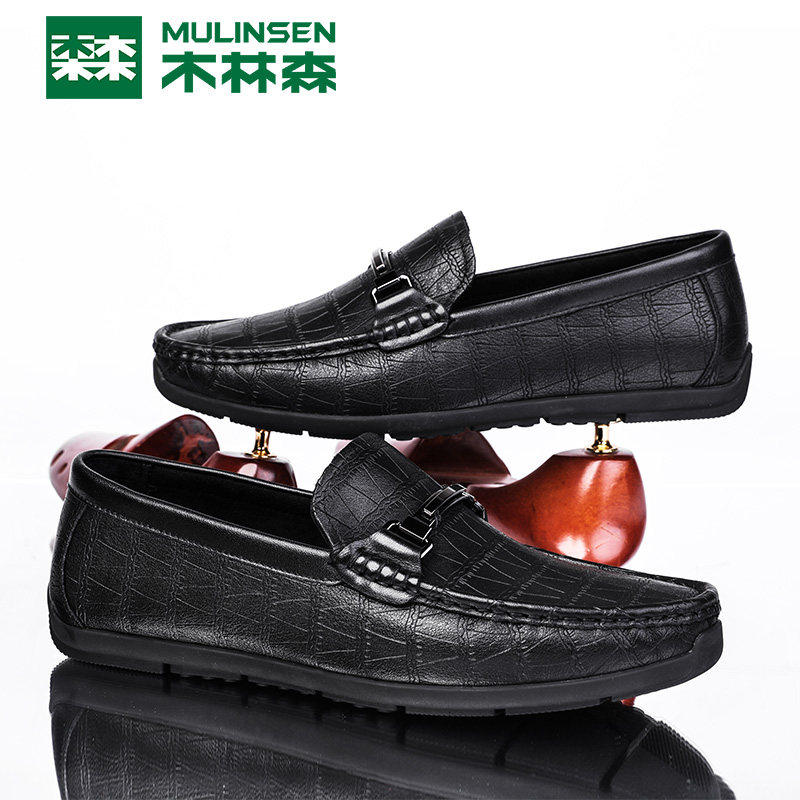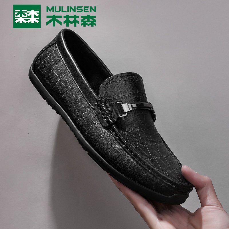 Wood Linson Men Shoes Business Casual Leather leather Leather Shoes Men Summer Genuine Leather Breathable a Foot foot Lazy Man Lefu Shoes