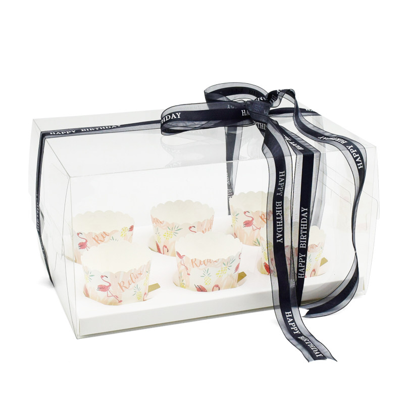24612 muffin cup full transparent cake packaging box PET wood bran cup flame top hat cup box baking packaging
