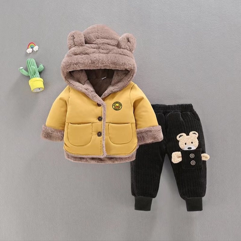 Baby cotton clothes 2022 winter new boys' clothing thickened cotton clothes children's baby warm plus velvet suit jacket tide