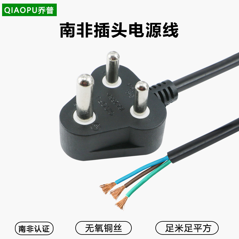 Pure copper small South African power cord India power cord 3 Core 1 5 0 75 squared large South African plug line Three columns