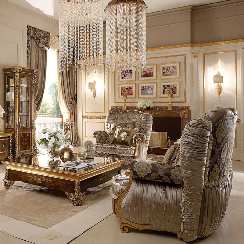 Style Palace Vintage Sofa Eu Style Living Room Full Solid Wood Sofa Combined Living Room Sculpture Flower Villa Furniture Custom