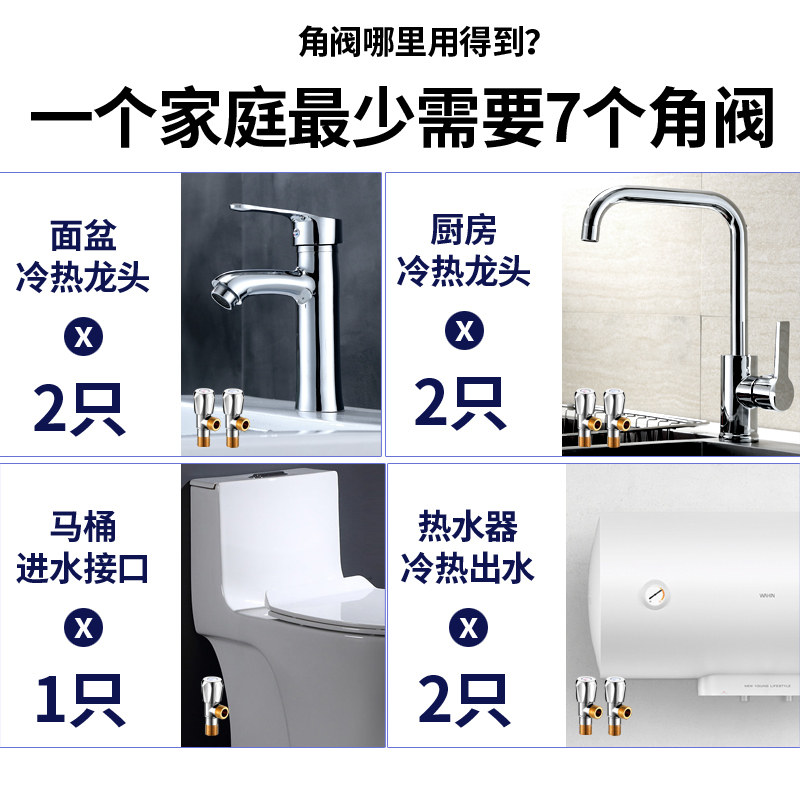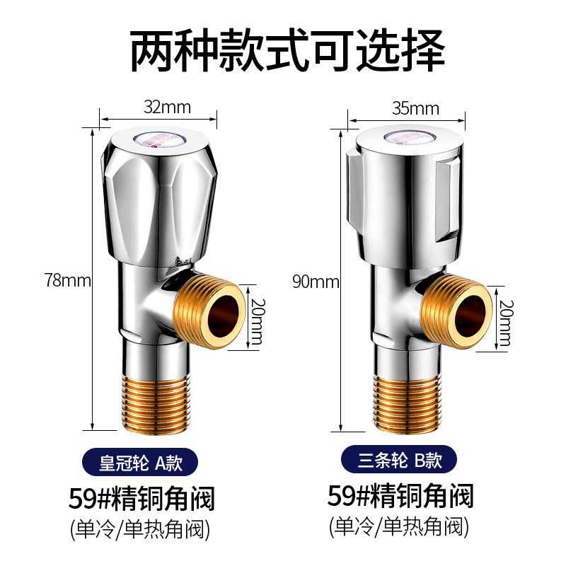 Triangular valve full copper hot and cold water home triple head pass in two double out 304 stainless steel 10% 2 water stop switch