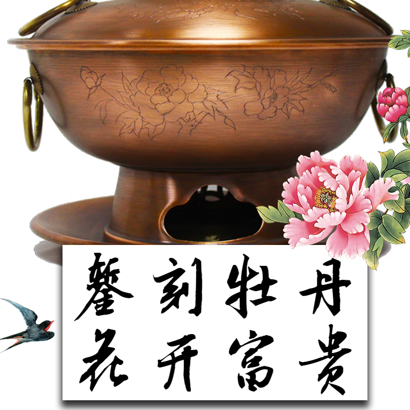 Special thick copper hot pot pure copper old charcoal stove Old Beijing copper pot Home All red copper mandarin skillet mutton thicken