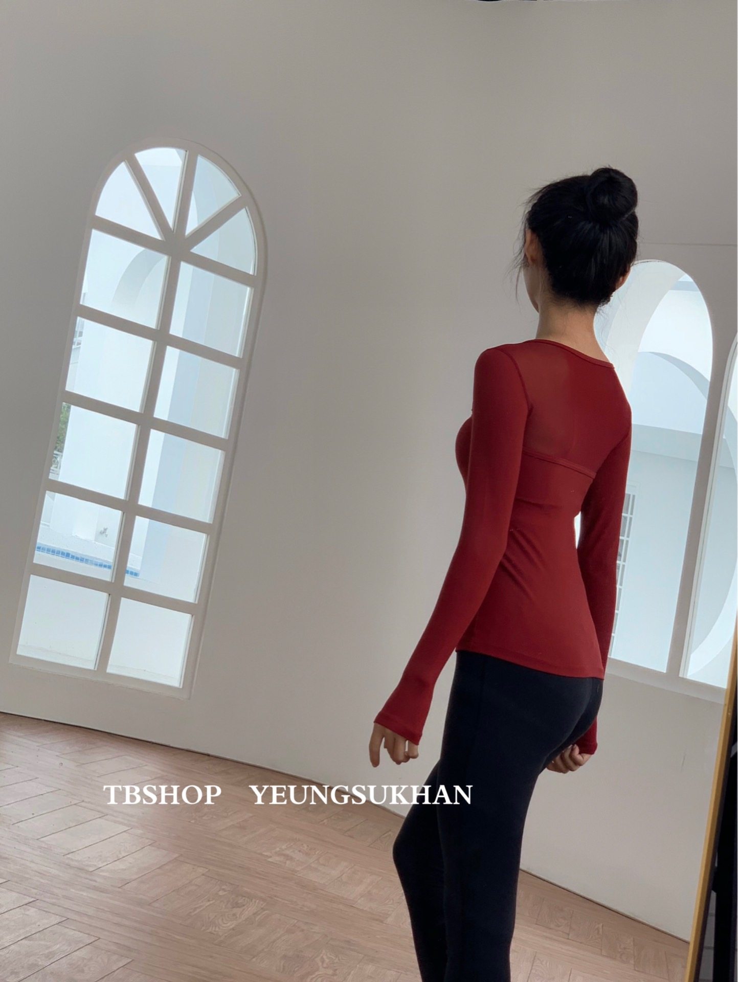 @YEUNGSUKHAN Korean version of the web yarn long sleeve yoga movement running with chest cushion splicing and repairing body aerial yoga