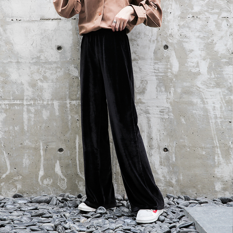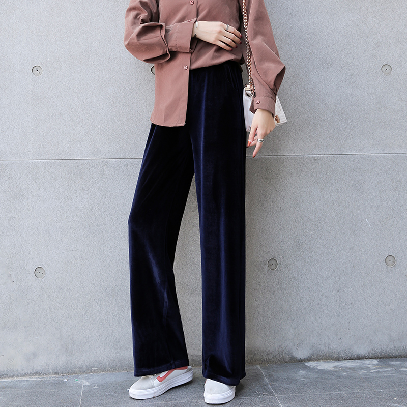 Large size women's gold velvet wide leg pants fat mm200 catty thin straight tube mop pants high waist loose casual pants
