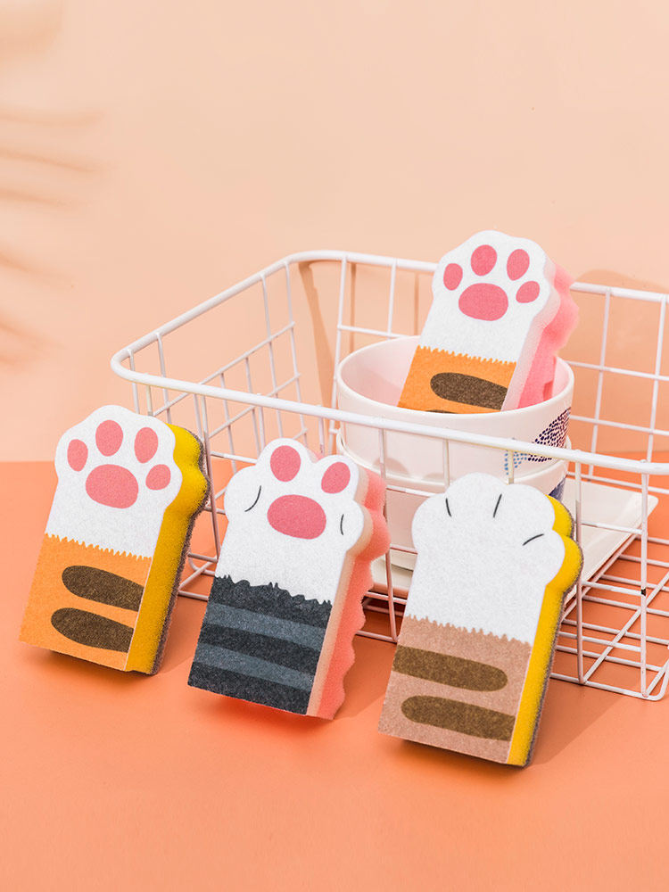 Cat claw cleaning sponge block cute cartoon household kitchen utensils dishwashing brush pot artifact magic magic wipe scouring pad