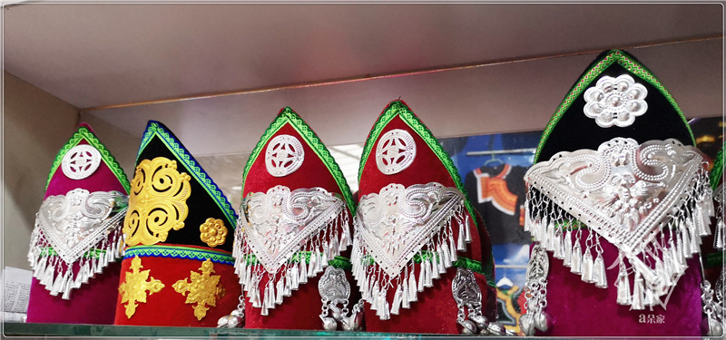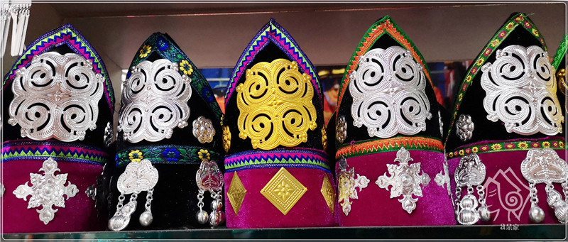 Yi children's hat girl imitating silver flower bell triangle hat minority dance hat decoration
