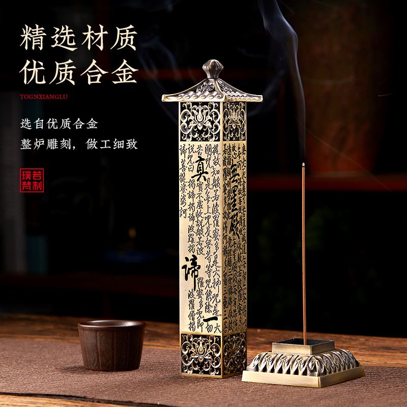 Puruofan antique alloy heart sutra vertical incense burner incense plug incense holder aromatherapy stove home indoor creative ornaments