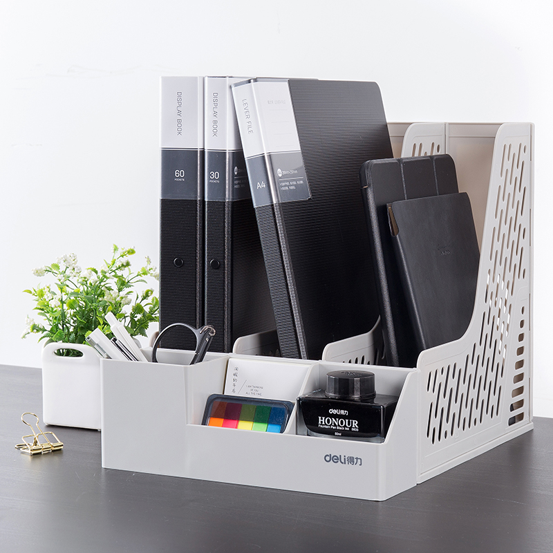 Deli 78980 file box with pen holder storage desktop finishing box office three-grid file information shelf file basket