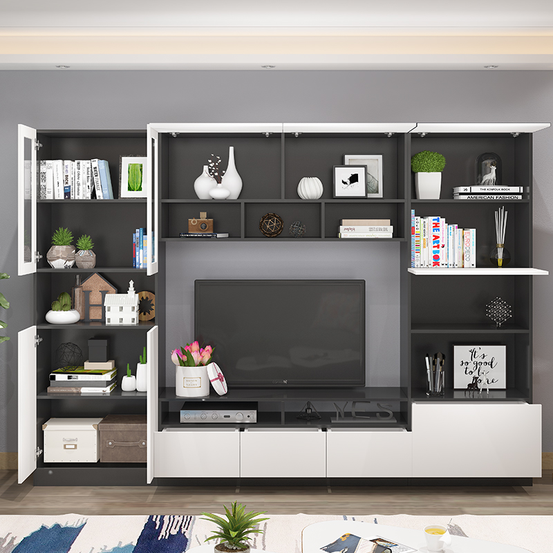 Modern minimalist multifunctional living room large TV cabinet film and TV cabinet combined European-style bookcase one-piece Nordic background wall