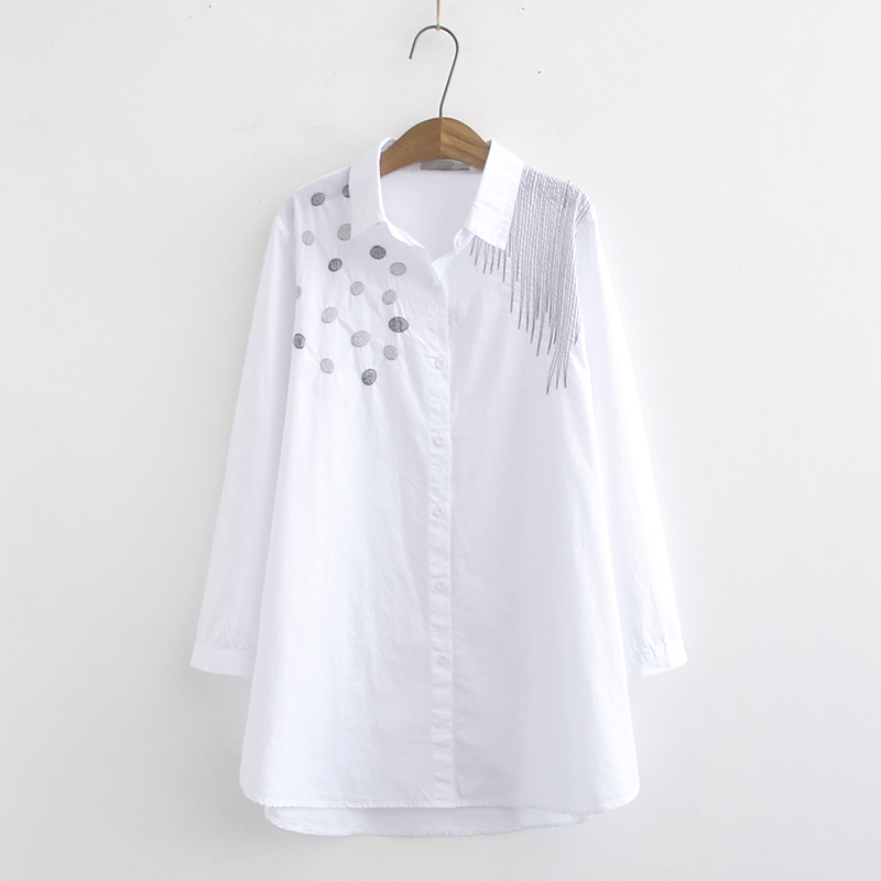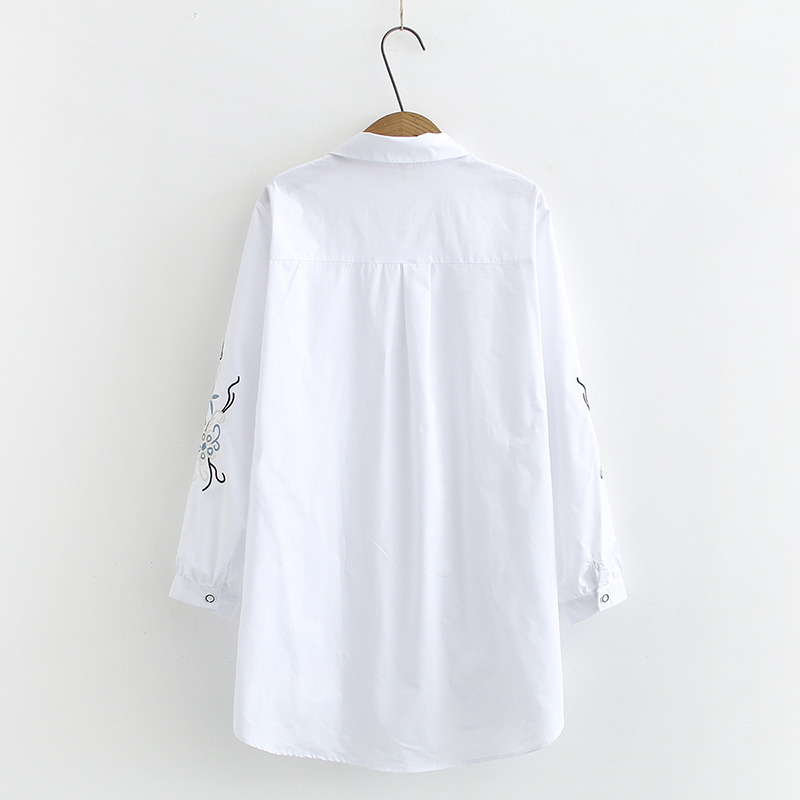 2022 spring new large size women's clothing fat mom casual top 200 jin can wear cotton long-sleeved embroidered shirt women