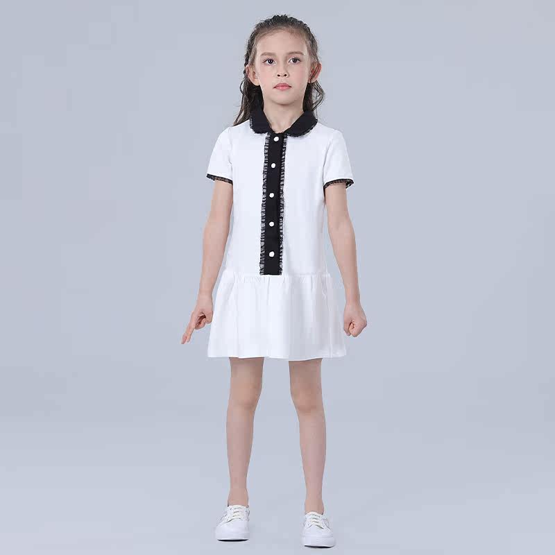 LynnMilo Lynn Milo 2022 summer girls cotton polo collar dress fake two-piece preppy skirt