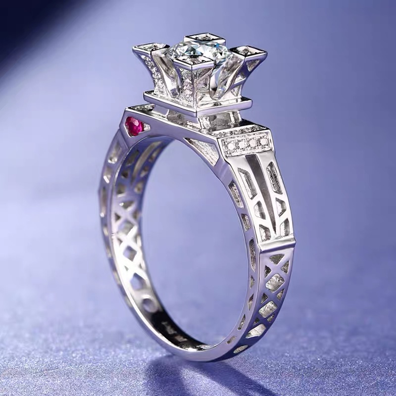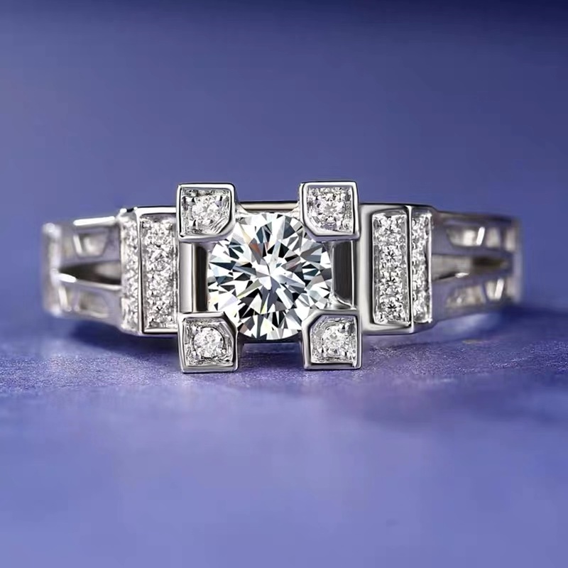 PT950 platinum Eiffel Tower four-claw diamond ring female one carat moissanite ring simulation female ring wedding female