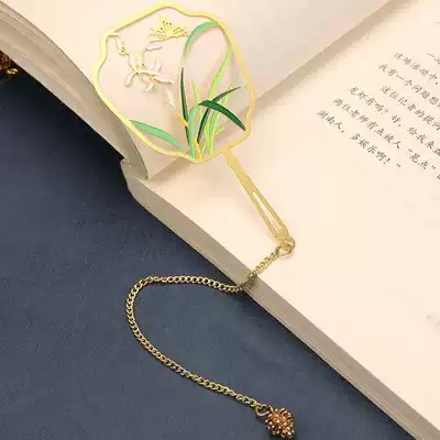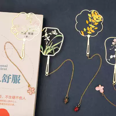 Ancient style group fan Metal brass bookmark for students Chinese style creative classical literature and art small fresh gift tassel simple hollow cute girl heart exquisite bookmark pendant Teacher's Day gift Teacher