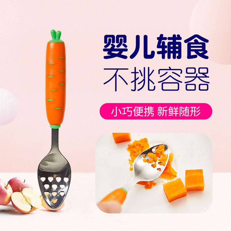 Japanese Greennose green nose infant non-staple food spoon grinding stainless steel scraping mud spoon apple fruit puree