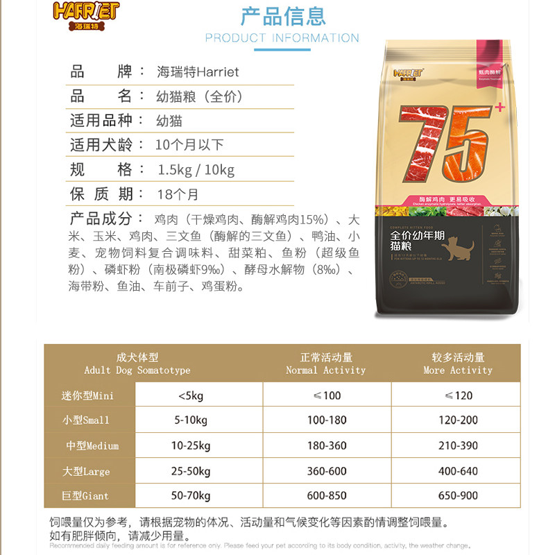 Hairit cat food 75 kitten food 1 5kg adult cat food 72 nutrition universal milk cake cat special staple food 10kg