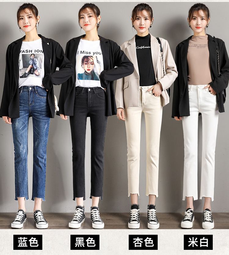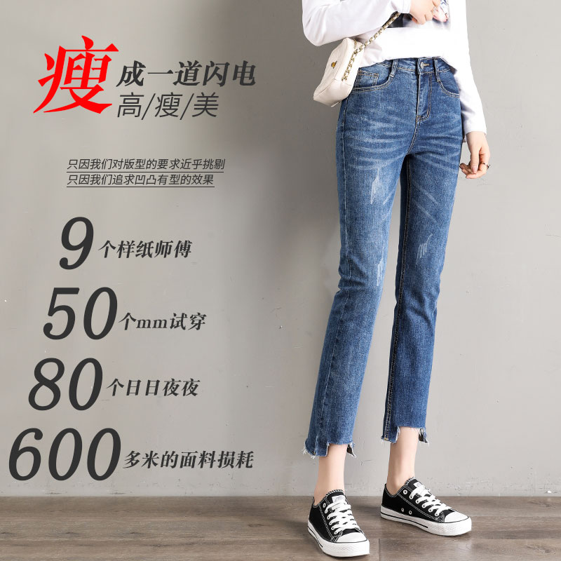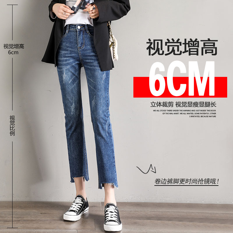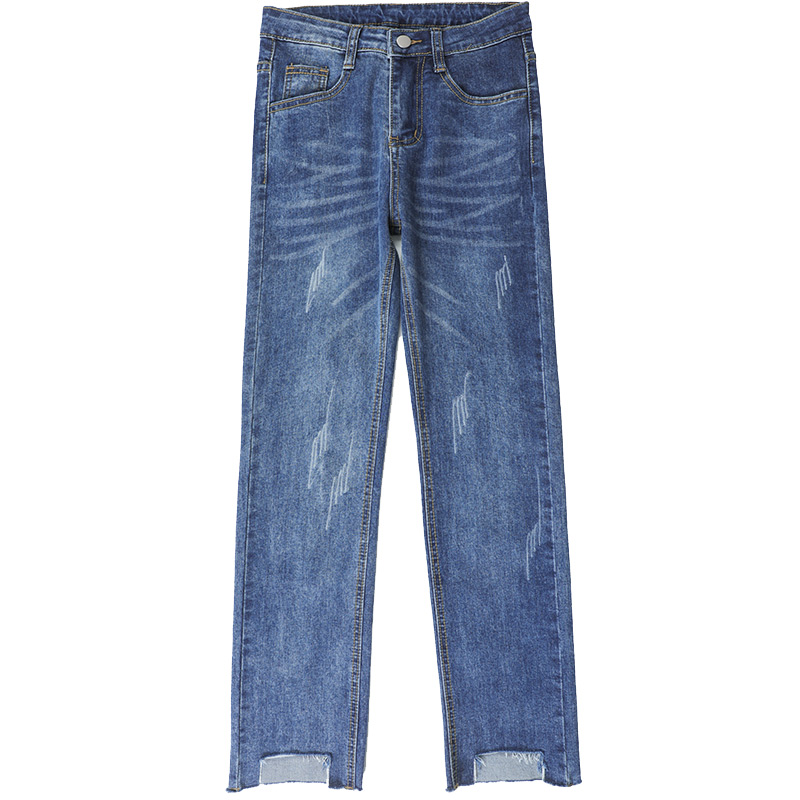 Straight jeans women thin high waist loose spring and autumn 2021 new nine-point micro horn pants pipe pants tide